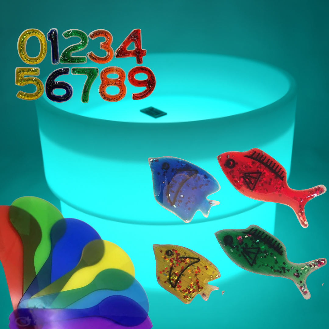 Bring playtime to life with the sensory mood light and water table by tickit® Watch the squishy fish and count along 1,2,3,4,5... using the water safe accessories!