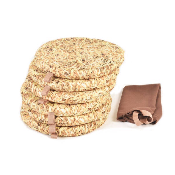 Summary: Set of 6 thick, foam filled, wipe clean, indoor/outdoor, portable sitting pads in 7 different design options.
