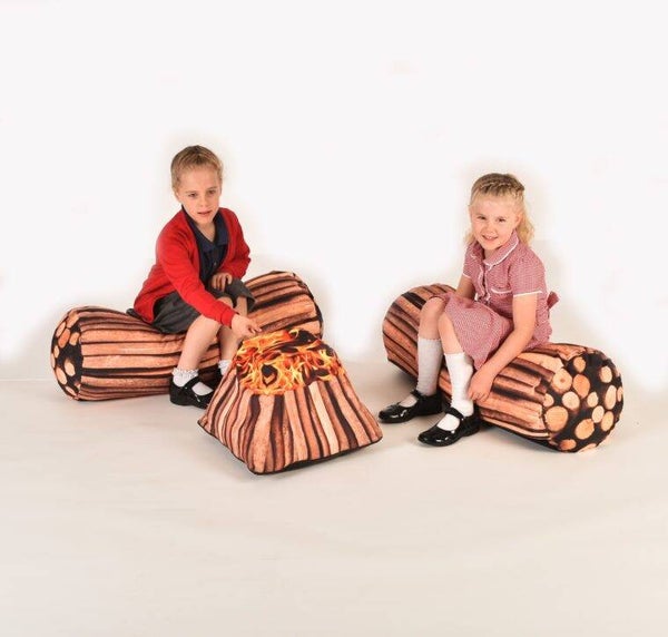 Summary: Pair of long log bolsters filled with bean bag beans. With durable wipe clean covers made from waterproof fabrics suitable for use outdoors and indoors. (Purchase F9208 campfire cushion separately)